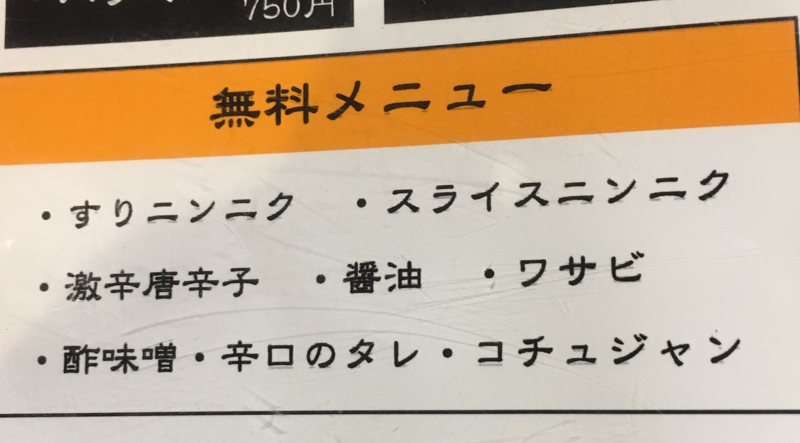あぶり屋川崎店には無料メニューという商品が記載されています