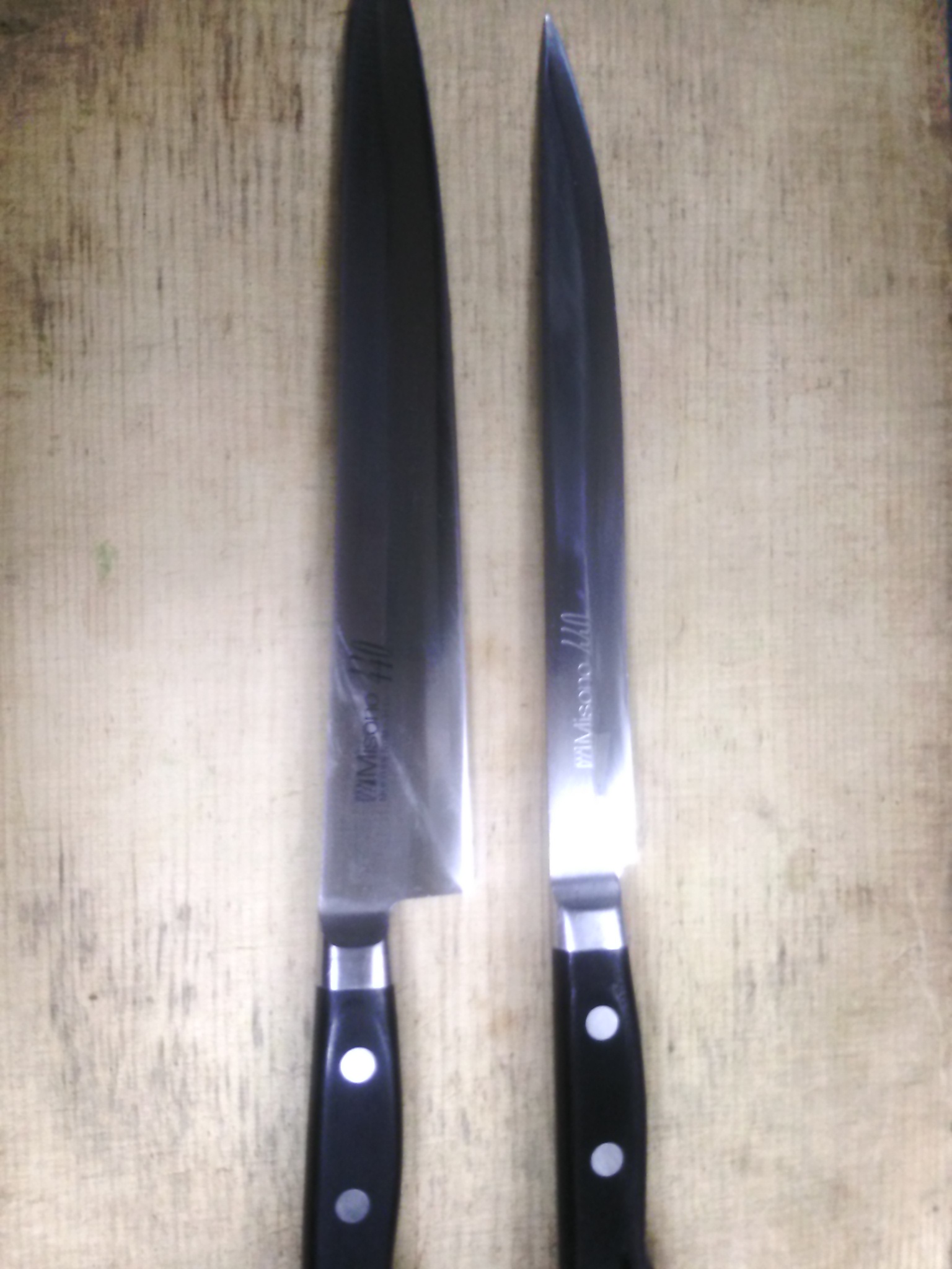 焼肉 あぶり屋 良い仕事は、良い道具から… 今月より店長代行として、営業する木本です。 今後はブログにて私の拘りを紹介させていただきます。 第1弾は「道具」 写真の2本の包丁は全く同じもの、2年くらい 使いこんだら、こうなりました。 実際に自在に動かせるのは、薄くなったほう… 手入れをきちんとした包丁は、肉の組織を無駄に 壊さず鮮度を保てます。 更に良く切れる包丁は、指切った時のキズの治りも早い! (って指切ってる次点で素人かっ?笑) そんな感じでゆる~いブログやっていきます。