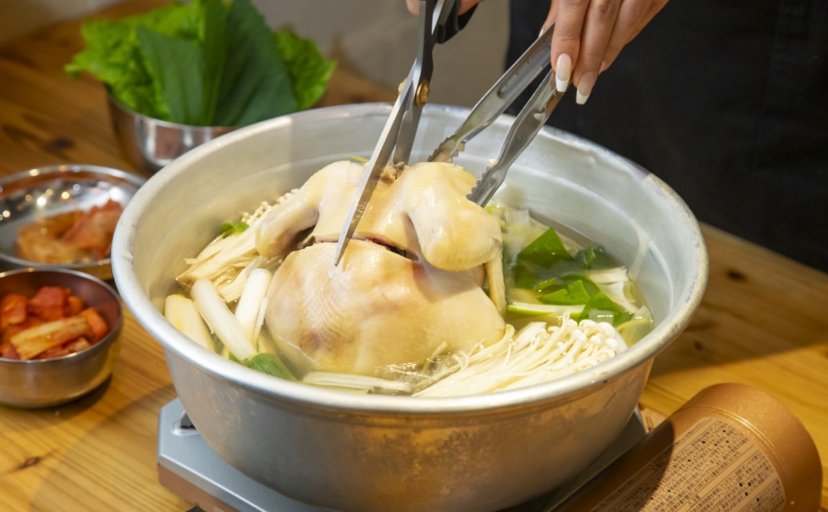 鶏を丸ごと1羽煮込んだ豪快な韓国鍋「タッカンマリ」。